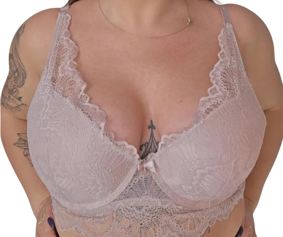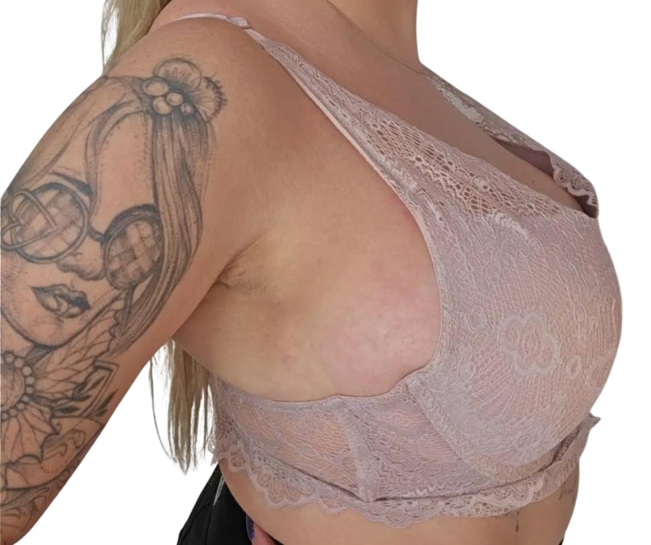 🩷 2. Pochyl się lekko do przodu, aby piersi naturalnie ułożyły się w miseczkach.