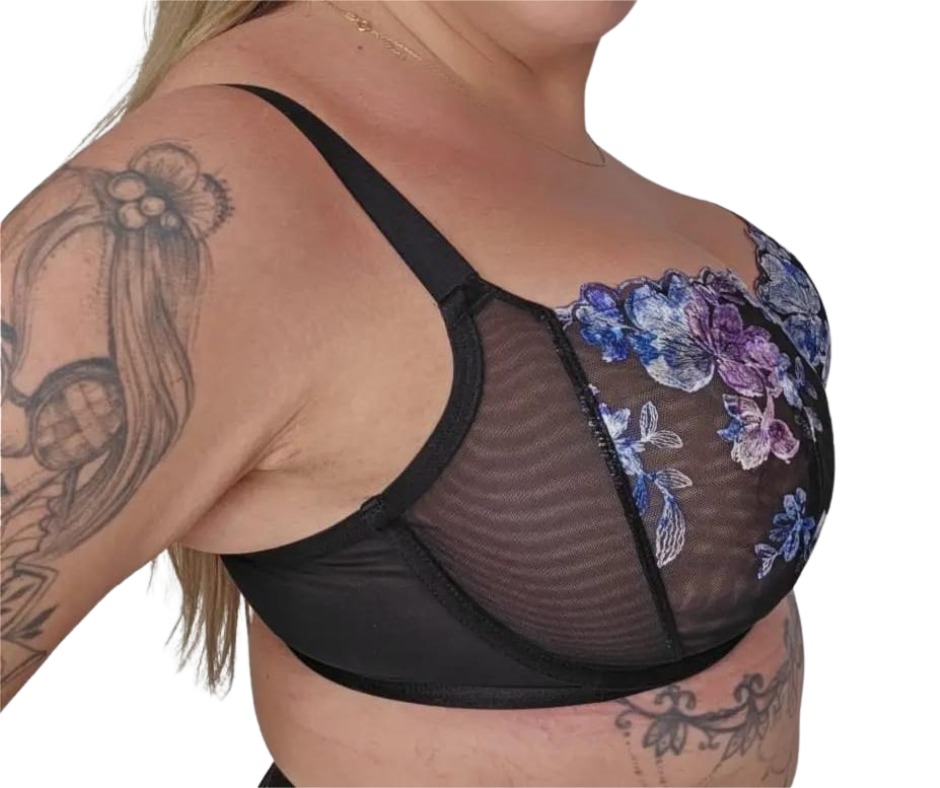 ❣️ Wyrównaj krawędzie miseczek – biust nie powinien się „wylewać” górą ani bokami, a miseczki nie mogą odstawać.